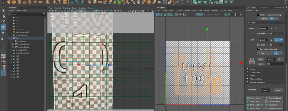 I measured the pixel distances. Ideally, the pixels for a VFX should be between 2048 to 4096 in map sizes. I set the texel densities of the doorknobs by 3. With the doorknobs I will implement a metal texture to them whereas the doors will be wood.