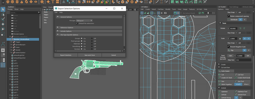Before I started the rendering process, I had to make some changes and amendments on the UV shells of the geometry of the revolver.